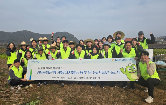 [시민일보 = 문민호 기자] NH농협은행(은행장 강태영) 개인디지털금융부문 박내춘 부행장과 임직원들은 지난 6일 가을 수확철을 맞아 경기 김포시의 무·대파 재배 농가를 방문해 농촌일손돕기 봉사활동을 실시했다고 밝혔다.