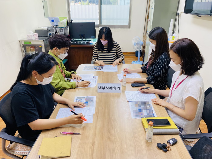 경기 동두천시 중앙동행정복지센터가 지난 25일 내부 사례회의를 열어 가족 부재 및 정신건강 악화로 인해 저장강박증이 심한 홀몸노인을 신규 통합사례관리 대상으로 선정하고 위기상황 해소에 필요한 서비스를 제공하기로 결정했다. 사진은 이날 회의가 진행되고 있는 모습. (사진제공=동두천시청)