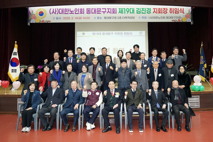 이날 동대문구청 2층 강당에서 진행된 취임식에는 이필형 동대문구청장을 비롯해 노인지회 회원 등 약 300명이 참석했다.