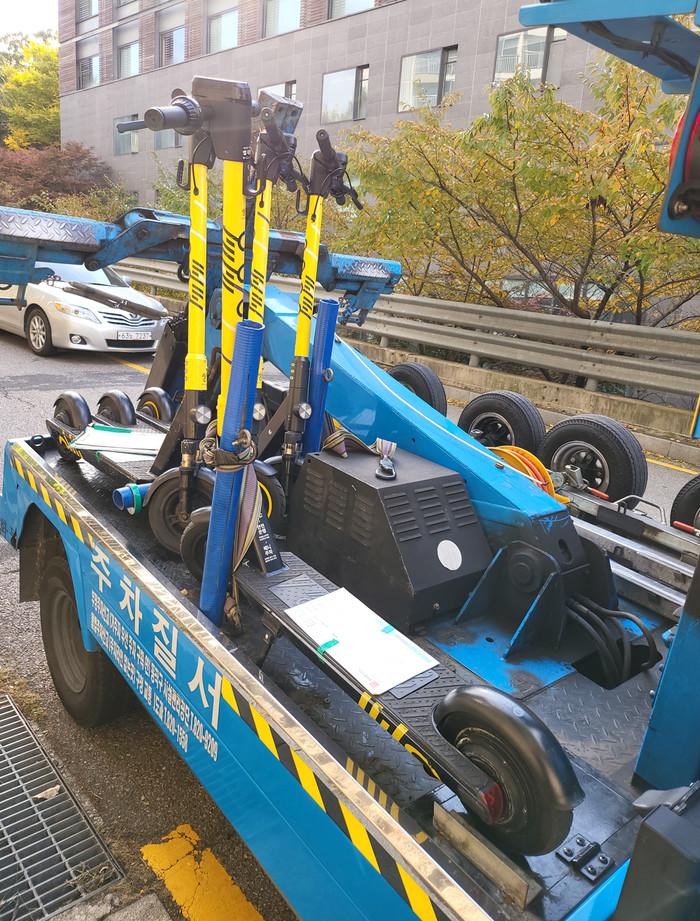 그밖에 일반보도에서는 주민 신고가 있으면 3시간의 유예시간을 부여해 킥보드 업체가 자율적으로 수거하며, 이후에도 조치되지 않을 시 견인한다.