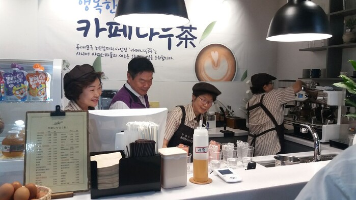 [시민일보 = 이대우 기자] 서울 동대문구(구청장 이필형)는 어르신일자리사업 지원기관인 동대문시니어클럽에서 운영하는 ‘카페나누다(茶) 3호점’이 최근 문을 열었다고 밝혔다.