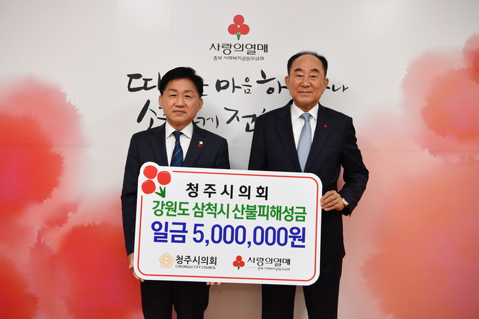 청주시의회(의장 최충진)는 13일(수) 사회복지공동모금회에 강원도 삼척시 산불 피해 이재민 지원을 위한 성금 500만원을 지정기탁했다.