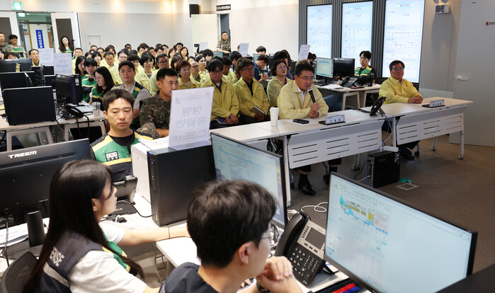 오승록 서울 노원구청장이 최근 종합상황실에서 발령된 을지연습 비상소집 훈련에 참여해 상황을 직접 점검했다. 사진은 오 구청장이 상황을 점검하는 모습. (사진=노원구청 제공)