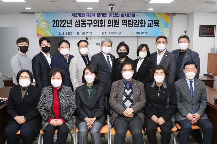 [시민일보 = 홍덕표 기자] 서울 성동구의회(의장 김현주)는 2023년도 예산안 심사를 대비해 최근 구의회 의원 역량 강화 교육을 운영했다고 22일 밝혔다.