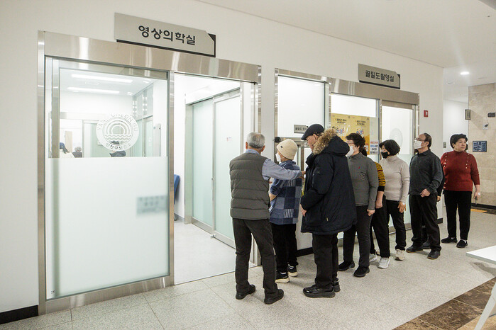 | ▲ 지난 2일 노인일자리 참여자들이 X-ray 촬영을 위해 대기하고 있는 모습. (사진=양천구청 제공) |