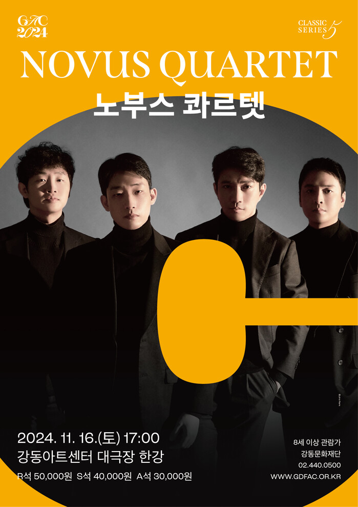 강동아트센터는 올해 총 5개의 공연으로 구성한 ‘GAC 클래식 시리즈’를 연중 운영하고 있으며, 그동안 클래식 거장들의 독주회와 실내악 등으로 채워진 다채로운 공연을 관객들에게 선보여 호평을 받아왔다. 해당 시리즈의 마지막 순서는 우리나라를 대표하는 현악사중주단이자 우리나라 실내악의 역사인 노부스 콰르텟이 장식한다.