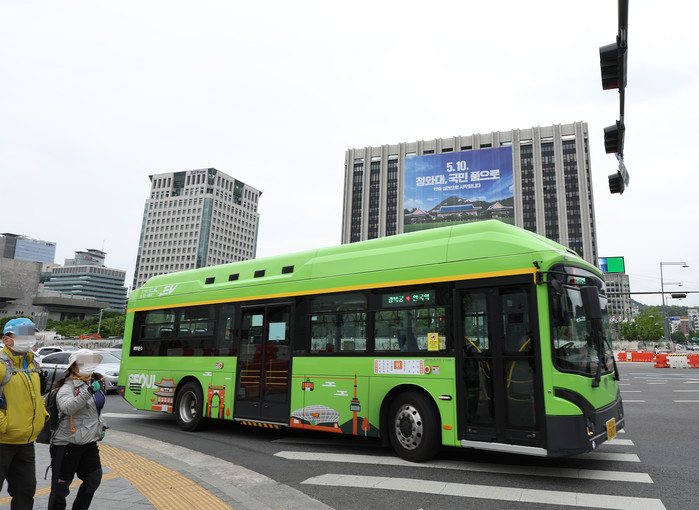 10∼22일 청와대 개방 행사에 맞춰 서울 도심을 순환하는 버스 노선이 신설되고, 지하철 3·5호선은 증차 운행된다. 서울시는 청와대와 인근 주요 6개 역사를 순환하는 시내버스(친환경 전기버스) 1개 노선(01번)을 신설해 지난 2일 운행을 시작했다. 8일 오후 서울 정부서울청사 인근으로 01번 버스가 지나가고 있다.