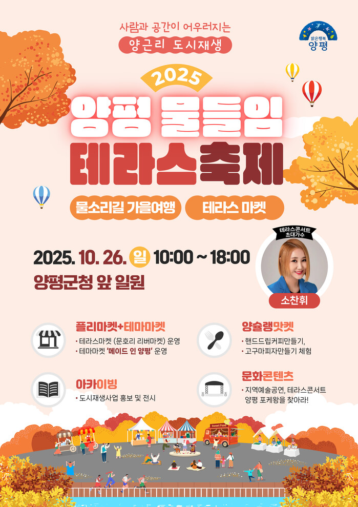 한편, 축제 당일 원활한 운영과 방문객의 안전을 위해 오전 9시부터 오후 7시까지 양근강변길 구간(르노코리아 ~ 양평대교 입구)이 통제될 예정이며, 군은 방문객들에게 대중교통 이용 또는 우회 도로 활용을 당부했다.