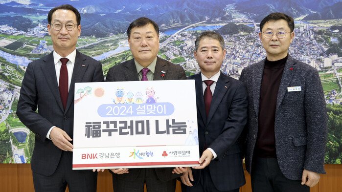 김윤철 합천군수는 “관내 어려운 이웃을 위해 성금을 기탁해 주신 경남은행 합천지점에 감사드린다”며 “경남은행에서 전달해주신 소중한 기부 물품이 지역의 어려운 이웃들에게 큰 힘이 될 것이다”고 말했다.