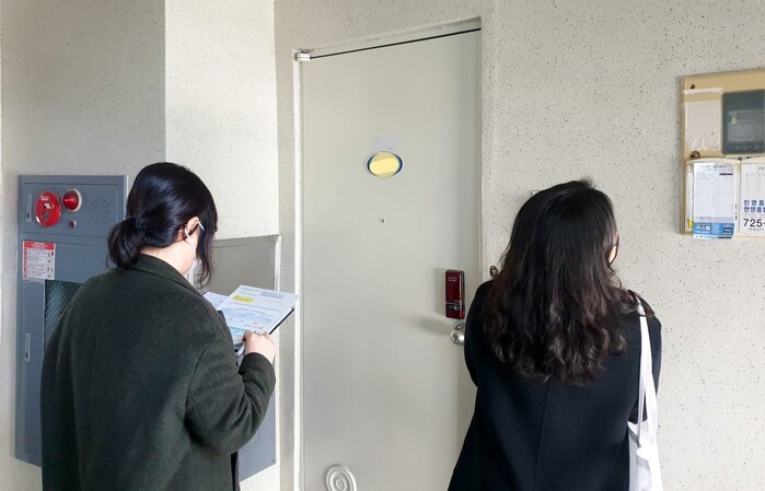 만약 집에 없어 만나지 못하는 경우 문의처가 표시된 안내문을 출입문에 부착한다.