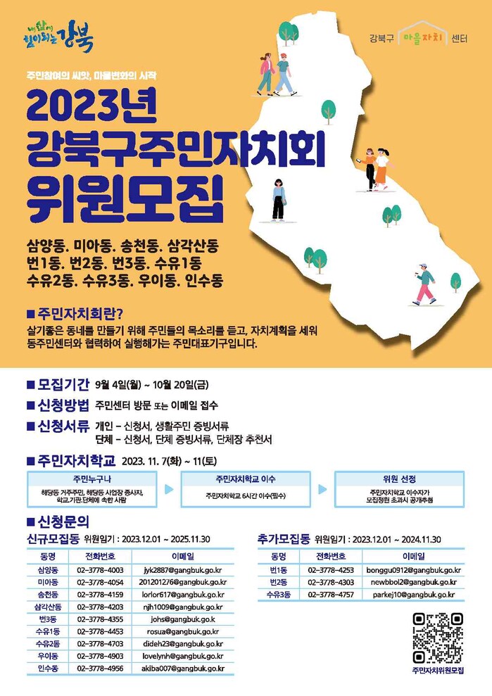 또한 번1동, 번2동, 수유3동 주민자치회에서도 결원이 발생해 37명의 추가위원을 모집한다.