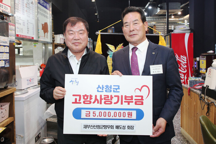 이승화 군수는 “산청군의 발전을 위해 따뜻한 마음을 보내줘 감사하다”며 “소중한 기부금은 지역 경제 활성화와 주민복지를 위해 사용하겠다”고 전했다.