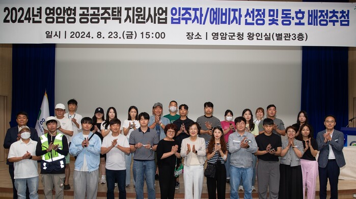 군은 지난 6월3일부터 이달 2일까지 3회에 걸쳐 영암형 공공주택 첫 입주자를 모집했고, 이날 추첨 참여자들은 영암군주거복지위원회의 심사를 거쳐 선정된 가구들이다.