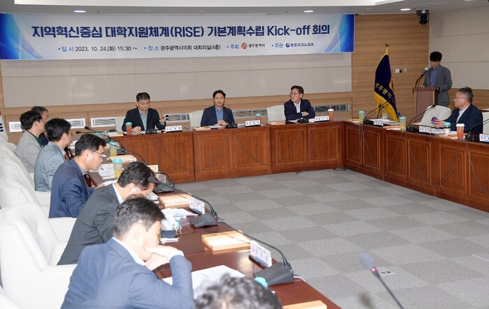 광주광역시(시장 강기정)와 (재)광주테크노파크는 24일 광주시의회 대회의실에서 라이즈(RISE) 기본계획 수립을 위한 지역대학 실무협의체 첫 기획회의(킥오프)를 개최했다.