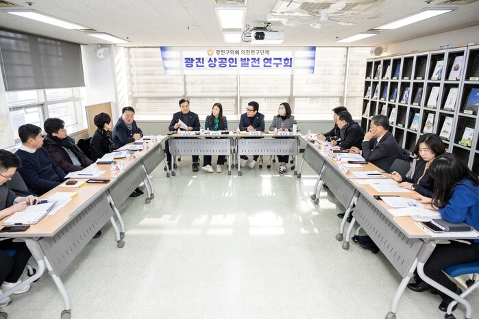 [시민일보 = 여영준 기자] 서울 광진구의회(의장 추윤구) 의원연구단체인 '광진 상공인 발전 연구회'가 최근 의회 브리핑실에서 광진구 상공회 임원진과의 의견청취 3차 간담회를 개최했다.