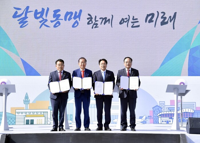 여기에는 민선 8기 소통의 리더십이 돋보였다. 강기정 시장은 여야 지도부의 협력을 끌어내 군공항이전특별법을 제정하고, 이전지역에 대한 맞춤형 지원이라는 투트랙 전략을 구사했다. 취임 직후인 지난해 7월 김영록 전남지사와 상생발전위원회 합의문을 전격 발표했고, 취임 4개월만인 11월에는 홍준표 대구시장과 ‘하늘길, 철길, 물길을 열기 위한 달빛동맹 협약’을 맺어 그동안 막혀있던 군공항이전의 전환점을 마련했다.