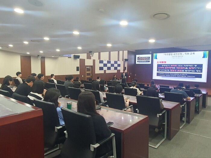 이날 교육은 주민이 공익 목적의 정책 의견을 제시하는 ‘적극행정 국민신청’ 제도에 대한 직원의 이해를 높이기 위해 마련됐다. 주민의 행정 수요를 반영하고 실천하는 적극 행정 공직문화를 정착시키고자 진행됐다.