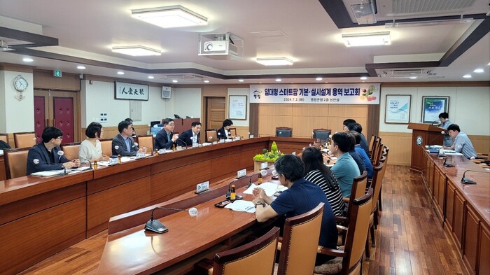 군은 지난 2일 군청에서 청년농업인, 한국농어촌공사 직원 등이 참석한 가운데 ‘지역특화 임대형 스마트팜 조성사업 기본계획 수립용역 중간 보고회’를 열었다.
