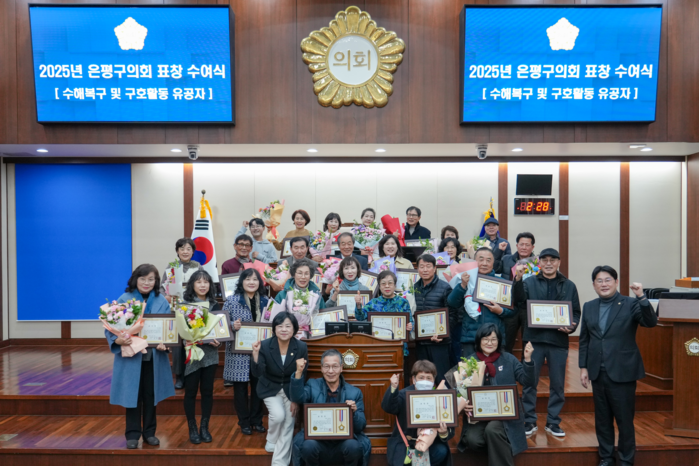 표창 대상자는 박순이(불광1동), 안관섭(불광1동), 이화심(불광1동), 장영례(불광1동), 이송재(갈현2동), 이정주(갈현2동), 박순애(구산동), 이강숙(구산동), 박두수(대조동), 채종채(대조동), 김일선(응암1동), 표외호(응암1동), 오동연(응암2동), 이수진(응암2동), 권용순(응암3동), 김상준(응암3동), 정경숙(응암3동),박 현자(응암3동), 김재복(응암3동), 심재신(역촌동), 김미정(역촌동), 이홍근(증산동), 오순기(증산동), 정재숙(수색동), 홍기정(수색동), 강문희(진관동), 김덕임(진관동)씨로, 구의회는 빗물받이 점검, 수해 예방 활동, 구호 물품 지원 등 재난 상황 극복을 위해 봉사한 점을 높이 평가했다.