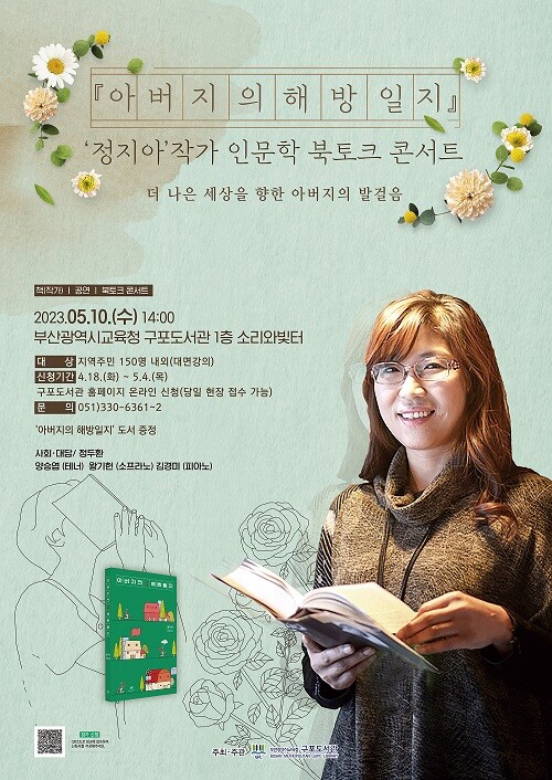 부산광역시립구포도서관(관장 김세훈)은 2023년 인성 독서 주간을 맞아 5월 10일 오후 2시 구포도서관 1층 소리와 빛터에서 지역주민 150여 명을 대상으로 ‘김유정 문학상’ 등 다수의 문학상을 수상한 정지아 작가 초청 북토크 콘서트를 개최한다.