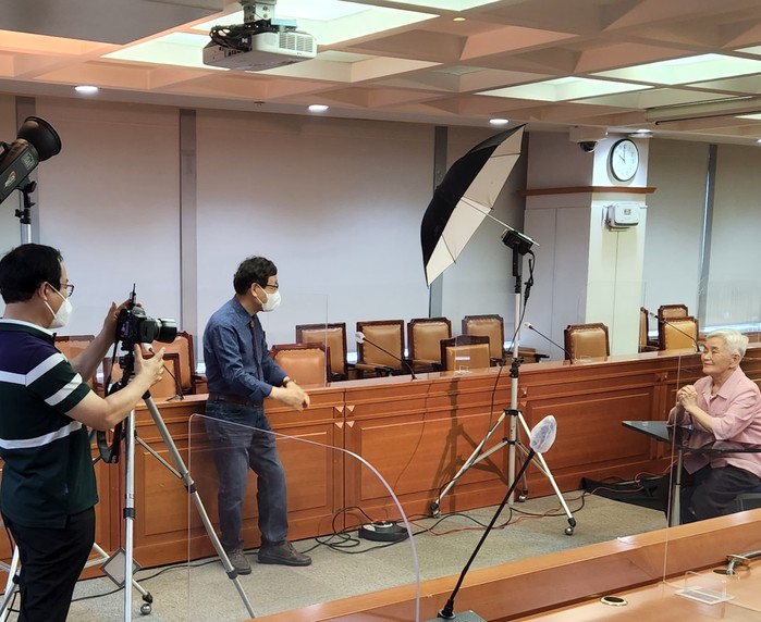 서울 성동구는 성동사진작가봉사회와 최근 지역내 65세 이상 노인 56명을 대상으로 ‘2022년 어르신 행복사진 촬영’ 행사를 진행했다. 행사는 노인들의 머리손질과 메이크업 및 사진을 무료로 촬영하는 순서로 진행했으며 사진은 액자로 만들어 전달할 예정이다. 사진은 이날 사진을 촬영하고 있는 모습. (사진제공=성동구청)