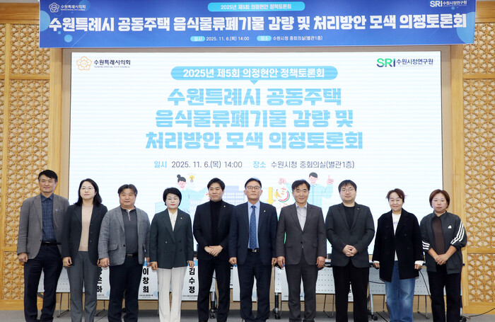 [수원=임종인 기자] 경기 수원시의회 환경안전위원회가 최근 수원시청 별관 1층 중회의실에서 ‘공동주택 음식물류폐기물 감량 및 처리방안 모색’이라는 주제로 의정토론회를 개최했다.