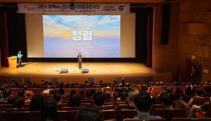 서울 용산구는 14일 ‘구민과 함께하는 청렴땡큐콘서트’의 청렴 토크를 개최했다. 이번 행사는 코로나 방역과 청렴한 용산을 위해 애쓴 모두에게 감사를 전하는 자리로 마련됐다. 사진은 박희영 구청장이 인사말을 하고 있는 모습. (사진제공=용산구청)