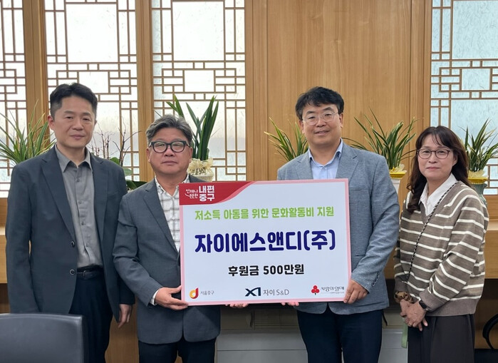 [시민일보 = 여영준 기자] 서울 중구가 최근 자이에스앤디 주식회사(자이S&D)로부터 저소득 아동 문화체험활동 지원을 위한 성금 500만원을 기탁받았다.