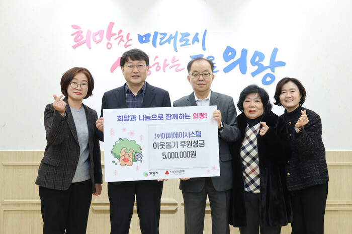 [의왕=송윤근 기자] 경기 의왕시가 지난 16일 (주)이씨에이시스템에서 지역사회 나눔 실천을 위한 성금 500만원을 기탁했다고 밝혔다.