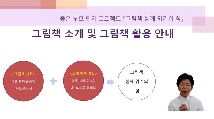 또한 학부모들을 위해 향후 1년간 계속해서 한 달에 한번 ‘그림책 산책’을 통해 그림책에 대한 다양한 정보를 제공하고 ‘그림책 밤마실’을 통해 지속적으로 그림책 활용에 대한 내용을 소개할 계획이다.