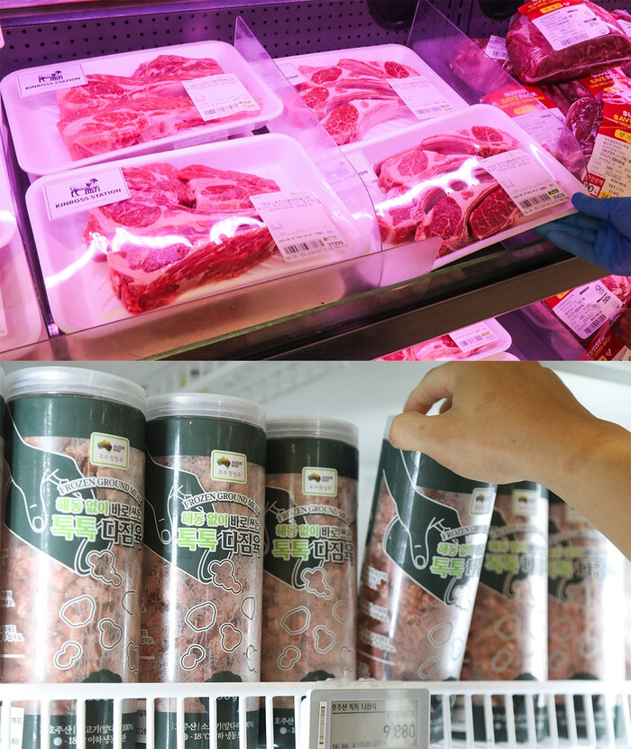 한편, 이마트는 축산코너 신상품으로 호주산 '톡톡 다짐육'(400g)도 출시했다. 1만원 이하의 캔 포장 다짐육으로, 볶음밥이나 찌개, 고깃국 등을 조리할 때 해동 없이 톡톡 털어서 사용하면 된다.