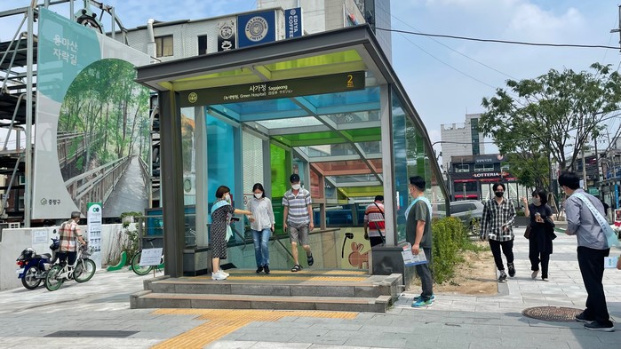 중랑구는 지난 4일 망우역·사가정역 앞에서 코로나19로 그동안 연기됐던 안전점검의 날 행사를 진행했다. 자율방재단과 안전보안관, 통·반장, 직원들이 함께 참여한 가운데 폭염대비 행동요령과 안전신고 홍보물을 주민들에게 배부했다. 사진은 이날 사가정역 앞에서 폭염대비 행동요령 안내문을 주민들에게 전달하고 있는 모습. (사진제공=중랑구청)