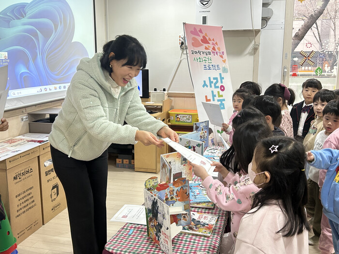 이번 기부는 어린이집에서 매달 1회 진행해 온 ‘꼬마 작가 활동’에서 출발한 것으로, 완성된 책들은 작은 출판기념회에서 공개됐다.