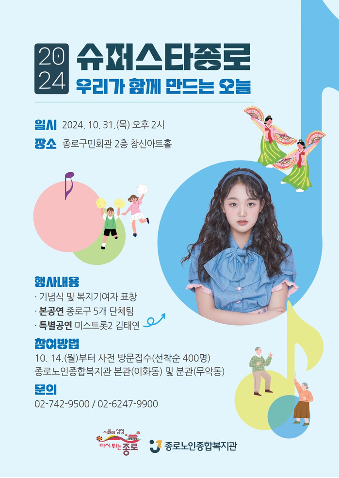 [시민일보 = 이대우 기자] 서울 종로구(구청장 정문헌)가 오는 31일 오후 2시~4시30분 종로구민회관 2층 창신아트홀(지봉로5길 7-5)에서 ‘2024 슈퍼스타 종로’를 개최한다.