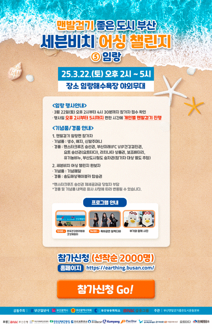3.20.까지 세븐비치 어싱 챌린지 누리집(earthing.busan.com)을 통해 참가 접수 중, 참가비 무료