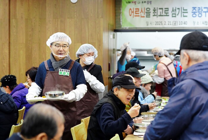 [시민일보 = 여영준 기자] 중랑구(구청장 류경기)가 지난 21일 시립중랑노인종합복지관 경로식당에서 500여 명의 어르신을 대상으로 한 배식 봉사 활동에 참여했다.