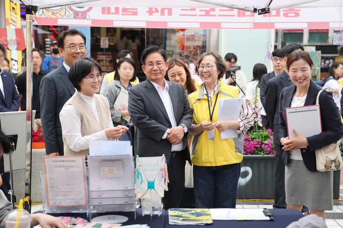 | ▲ 박강수 마포구청장이 ‘홍대 레드로드 청년 일자리 페스타’가 열린 홍대 레드로드를 찾았다. (사진=마포구청 제공) |