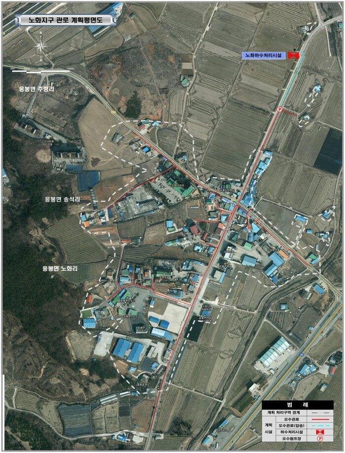 평촌ㆍ노화지구 농어촌마을하수도 정비사업은 2019년 9월 한국환경공단과 위ㆍ수탁 협약을 체결하고 환경부 국고보조금 지원사업에 선정돼 국비 65%, 도비 15%를 지원받아 소규모공공하수처리시설 1곳 신설(110㎥/일), 오수관 신설 12.5km, 배수설비 283가구 설치 등 총 153억원을 투입해 2026년 상반기까지 공사를 완료할 계획이다.