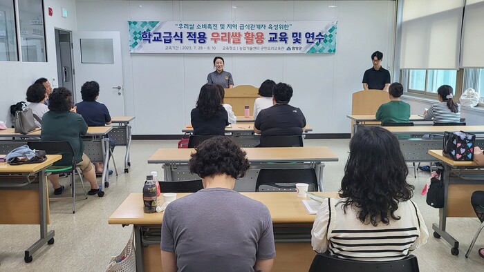 조리기능장인 권용숙 강사를 초빙하여 우리쌀을 활용하여 단체급식 등에 적용할 수 있는 우리쌀 가공식품 레시피 5종에 대해 교육을 실시하며, 자라나는 관내 학교 학생들에게 제공할 우리 쌀을 활용한 질좋은 급식을 구성하는데 적용할 수 있는 레시피를 배울 수 있을것으로 기대하고 있다.