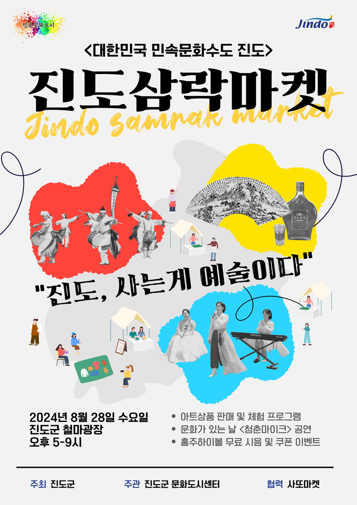 또한 ‘진도삼락’이라는 테마로 진도삼락의 고유한 의미를 재해석한 다양한 예술 체험과 미식, 생활 양식(라이프 스타일) 상품을 지속적으로 선보여 문화도시 진도를 대표할 만한 문화상품들을 지속 발굴하는 지역 마켓이다.