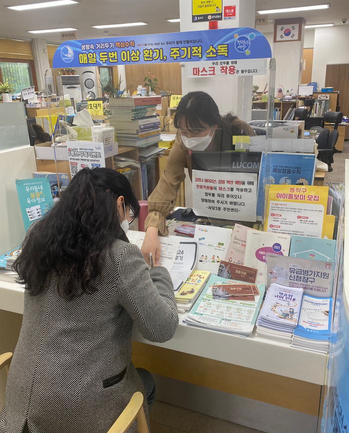 | ▲ 사당3동 주민센터에서 ‘보조금24’ 관련 상담을 받고 있는 주민 (사진제공=동작구청) |