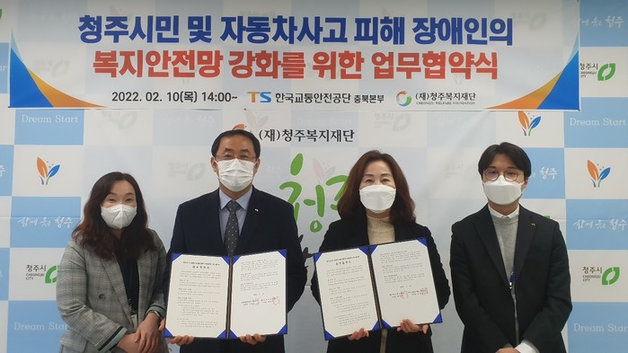 이날 협약에 따라 청주복지재단은 사회복지·보건·의료기관 네트워크를 활용해 자동차사고 피해 장애인에게 복지서비스를 지원·연계하고, 한국교통안전공단 충북본부는 자동차사고 피해 지원사업 홍보, 안전의식 제고를 위한 교통안전교육 지원, 교통안전문화 확산을 위한 캠페인 등을 진행할 예정이다.