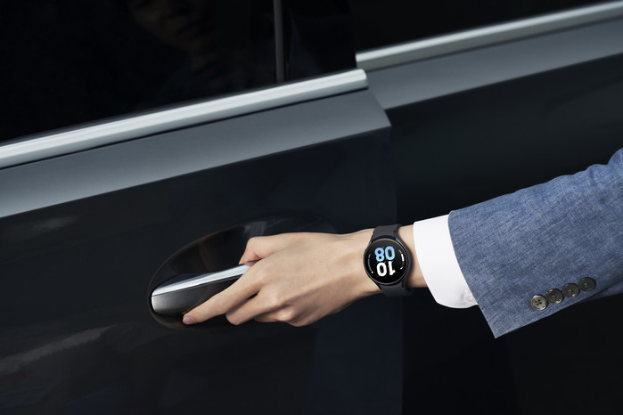 | ▲ 갤럭시 워치5 사용자가 자동차 문을 여는 장면.(사진제공=삼성전자) |
