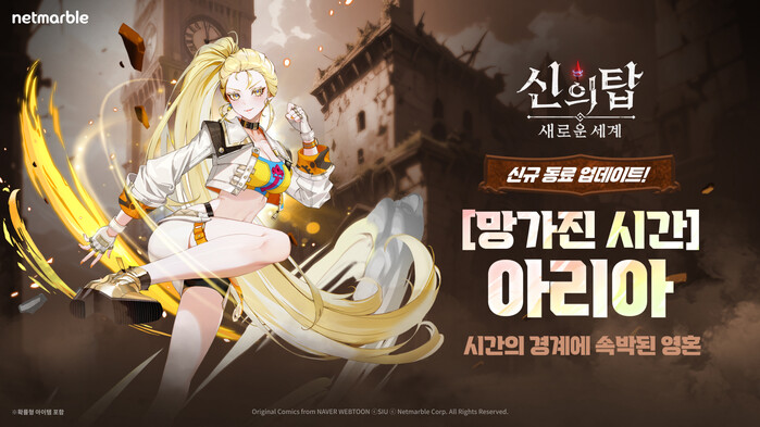 [시민일보 = 여영준 기자] 넷마블은 수집형 애니메이션 RPG <신의 탑: 새로운 세계>(개발사 넷마블엔투)에 신규 SSR+등급 동료 '[망가진 시간] 아리아'와 새로운 성장 시스템 '부유선'을 업데이트했다고 10일 밝혔다.