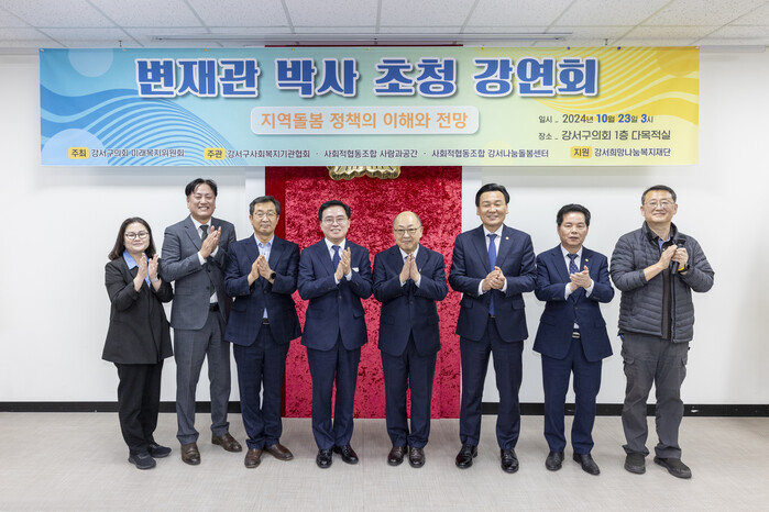 강연회는 돌봄통합 분야의 전문가인 변재관 박사(한일사회보장정책포럼 대표)를 강연자로 초청하고, ▲ 강서구의회 미래·복지위원회가 주최하였으며, ▲ 강서구 사회복지기관협회 ▲ 사회적협동조합 사람과공간 ▲ 사회적협동조합 강서나눔돌봄센터 3개 단체의 공동 주관으로 개최되었다.