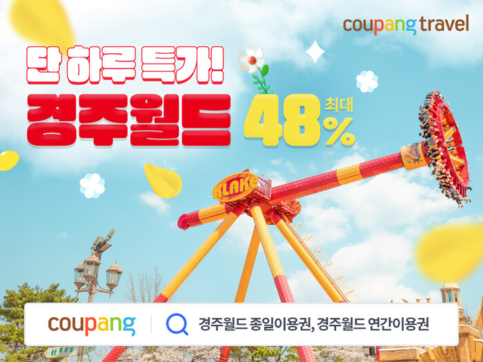 [시민일보 = 이대우 기자] 쿠팡이 봄 나들이 시즌을 맞아 와우회원 대상으로 경주월드 이용권을 최대 48% 할인 판매한다. 경주월드는 경주 보문단지에 위치한 대형 테마파크로 다양한 어트랙션과 볼거리가 있어 인기가 높다.