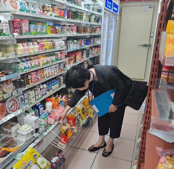 | ▲ 성동구 전담직원이 학교 주변 등 어린이 식품안전보호구역 지도점검을 실시하고 있는 모습. (사진=성동구청 제공) |