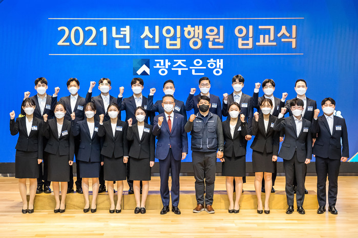 [시민일보 = 이대우 기자] 광주은행(은행장 송종욱)은 최근 본점에서 2021년 신입행원 채용에서 신입행원들의 연수에 앞서 입교식을 가졌다고 밝혔다.