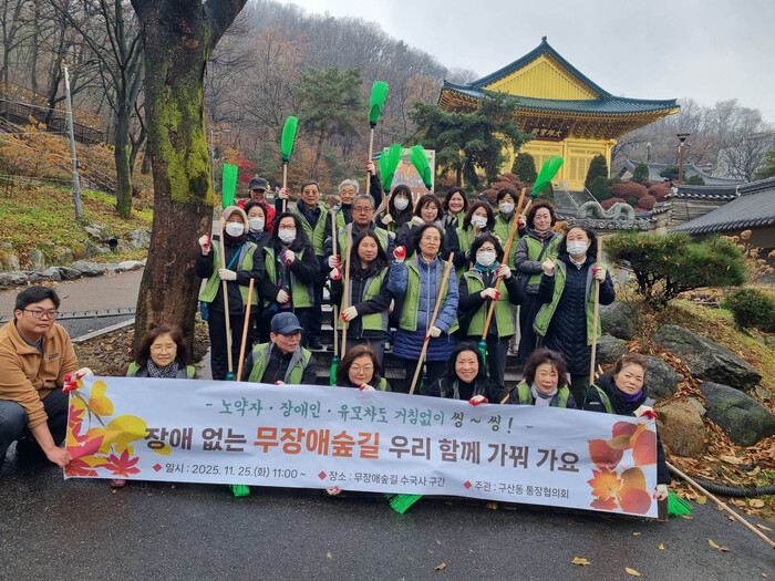 박재균 구산동장은 “보행 약자의 안전을 위한 뜻깊은 봉사활동을 해주셔서 감사하다”며 “통장단과 함께 깨끗한 마을환경 조성에 힘쓰겠다”고 말했다.