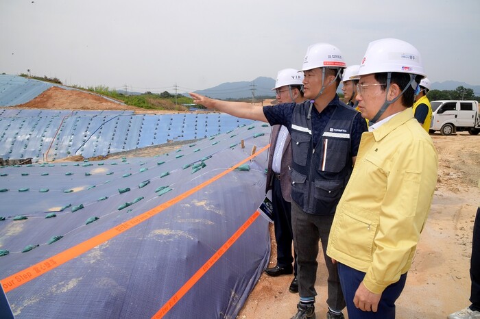 [광주=정찬남 기자] 문영훈 광주광역시 행정부시장이 7일 북구 오룡동 인공지능 중심 산업융합 집적단지 데이터센터 공사현장을 방문해 사업현황을 보고 받은 후 안전점검을 하고 있다./광주광역시 제공
